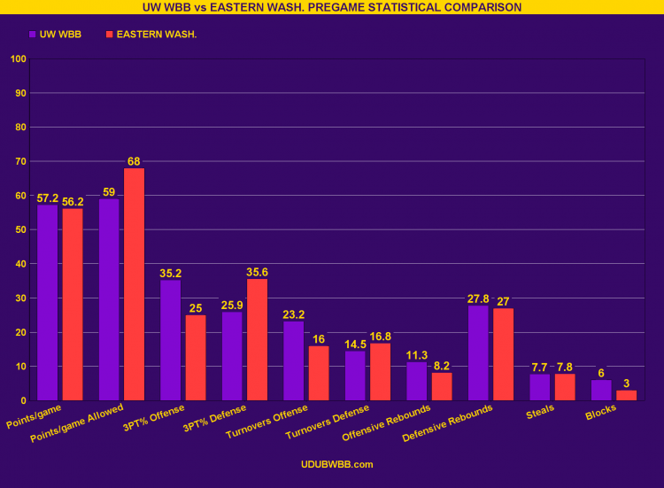 <h4><img class="alignnone size-jnews-featured-750 wp-image-9291" src="https://udubwbb.com/wp-content/uploads/2021/12/20211218082429_hd-750x551.png" alt="" width="750" height="551" /> This chart illustrates a comparison between the UW Women’s Basketball versus the Eastern Washington Eagles.</h4> <h4>The Washington WBB Huskies will face Eastern Washington on Saturday, December 18th at 2PM PT.</h4>