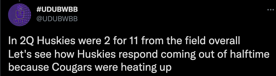 In the fourth quarter, the Huskies shot 25% from the field overall (3 for 12).