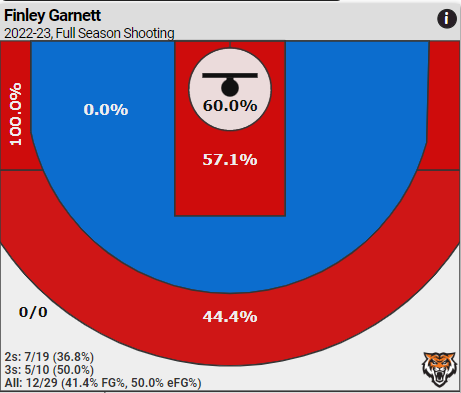 Finley Garnett is the second-leading scorer for the Bengals at only 7.0 points per game, while adding 4.5 rebounds, 2.5 assists and 1.5 steals.
