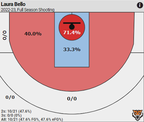 On offense, Bello operates exclusively in the paint and mid-range areas. Bello has attempted zero threes this year.