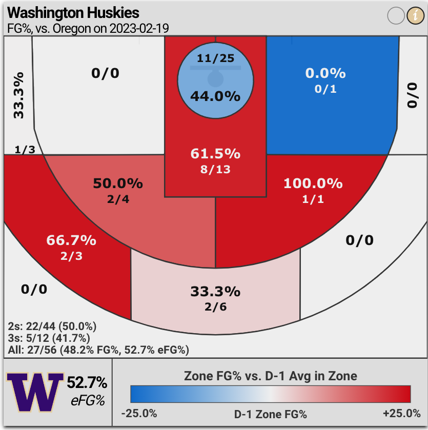 UW also outscored beat the Ducks in points-in-the-paint, 38-24.