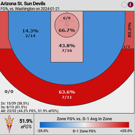 ASU shot 44.2% from the field overall, including and 38.5% from two-point range.