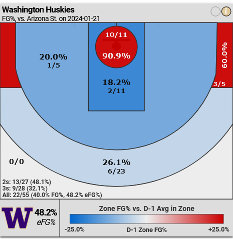 However, Washington’s thee-point defense was ineffective, allowing ASU to shoot a red-hot 61.5% accuracy from three-point range