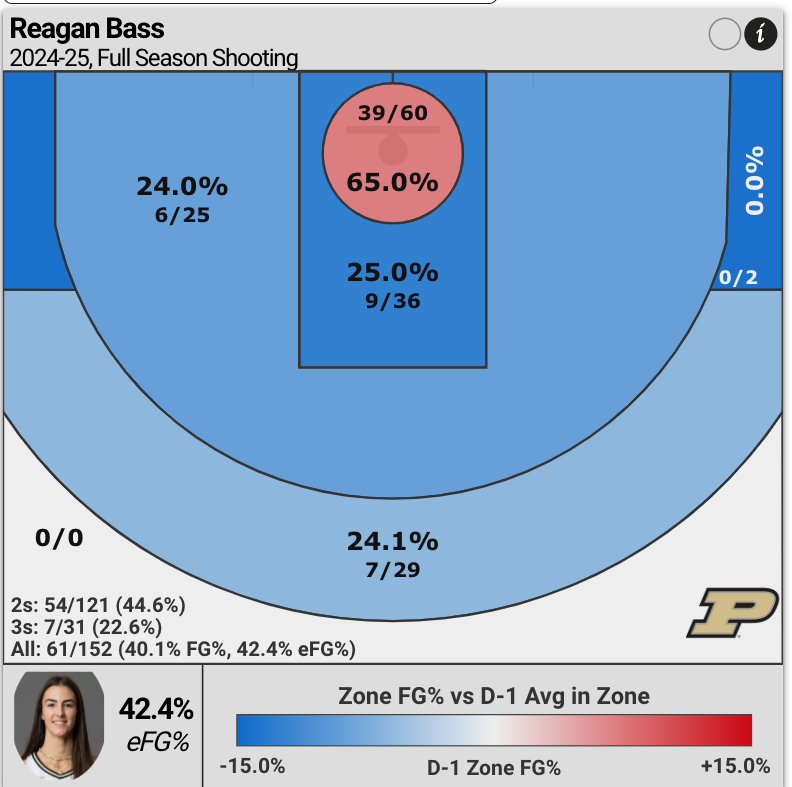 Reagan Bass, a “6’2′ senior forward, averages 10.2 points per game; along witha team-leading 5.8 rebounds; and 1.1 blocks.