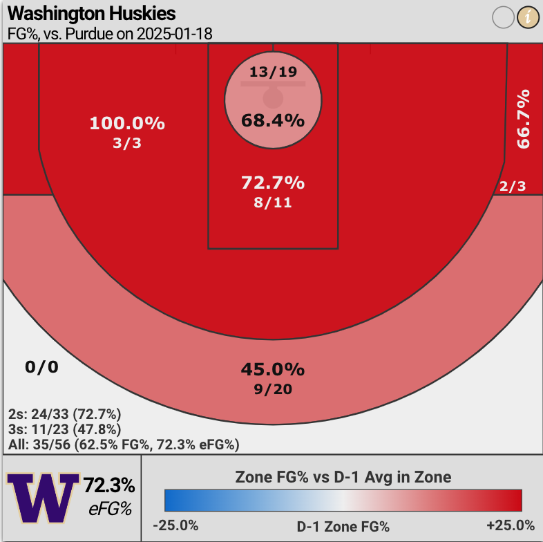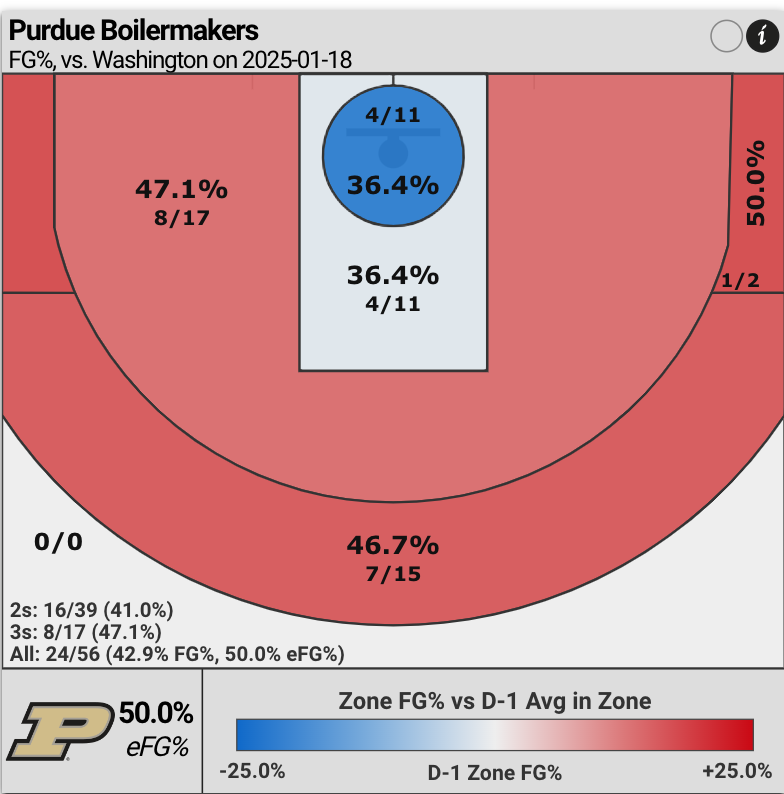 UW recorded 42 points in-the-paint versus only 16 by Purdue.