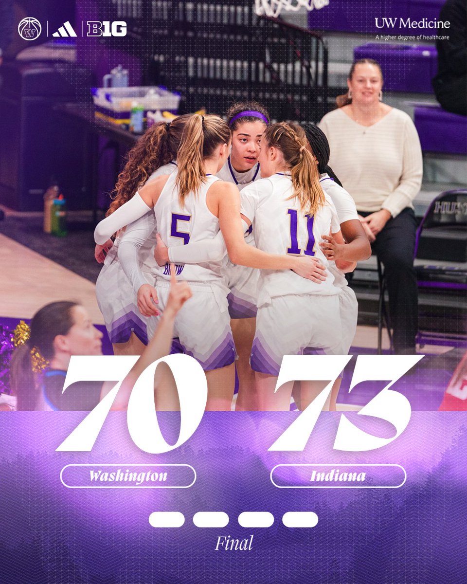 The Huskies last second shot by Hannah Stines missed and Washington lost by 3 points to the Hoosiers, 70-73.