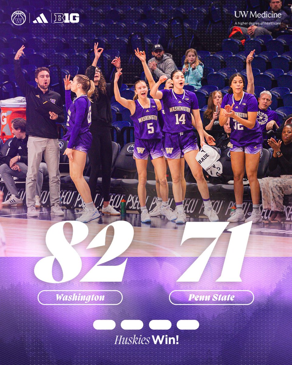 Hot Shooting UW WBB Huskies Defeat Penn State, 82-71, for Road Victory