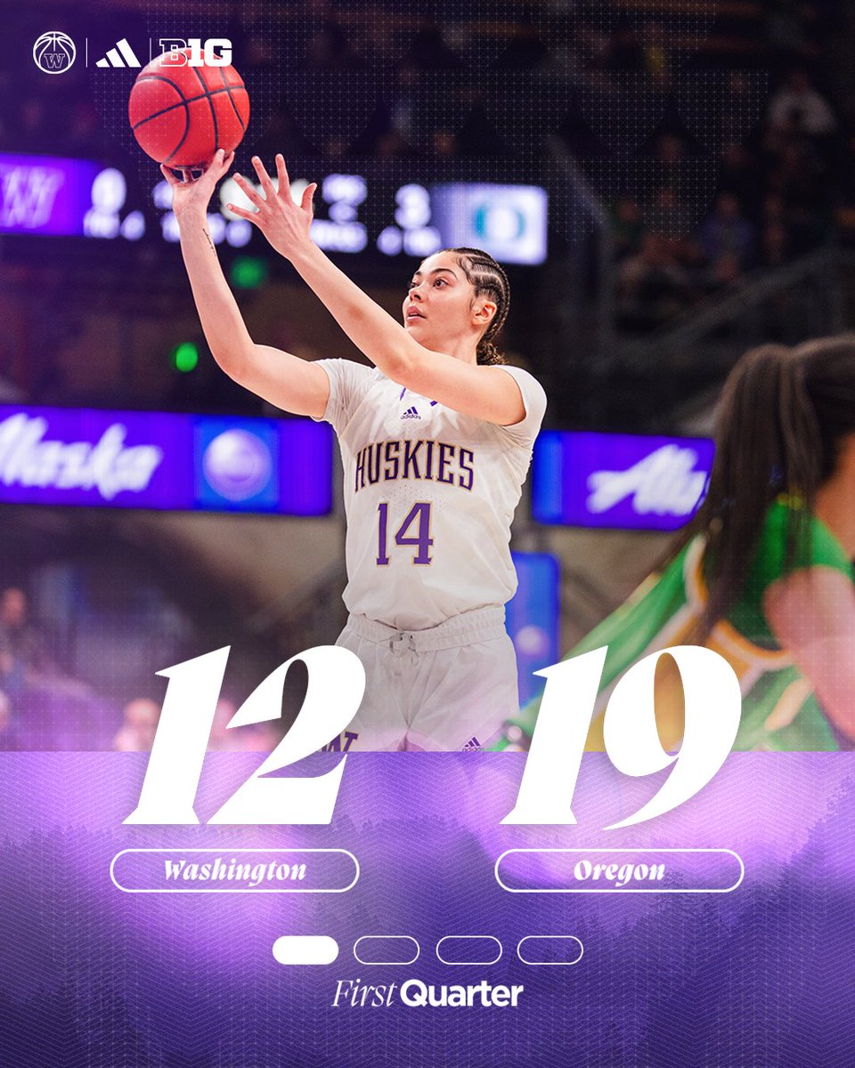 The Huskies trailed Oregon by seven points at the end of the first period, 12-19.