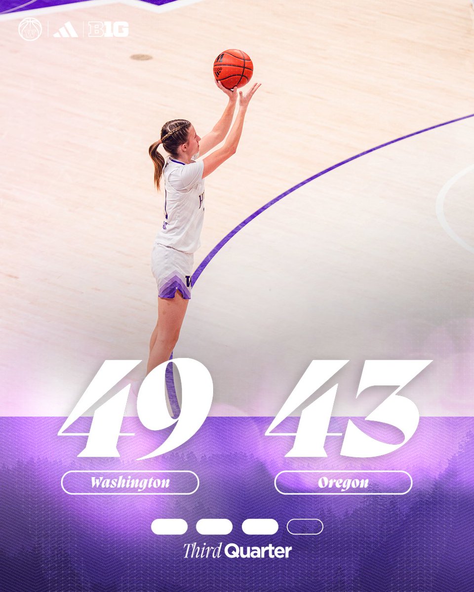 The Huskies ended the third period leading by six points over the Ducks, 49-43.