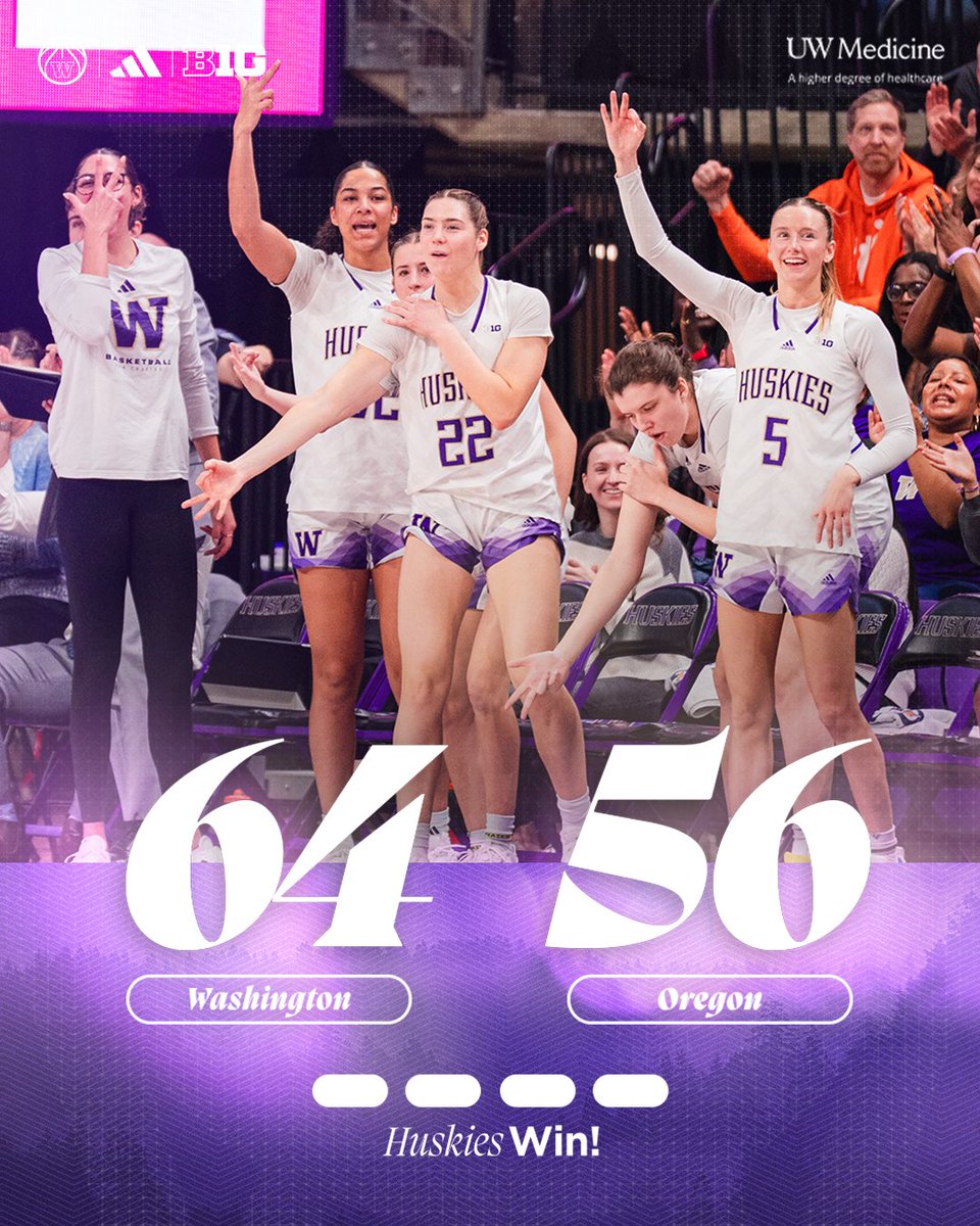 The Washington Huskies (18-12 overall, 9-9 B1G) defeated archrival Oregon (19-10 overall, 10-8 B1G), 64-56, in front of a home crowd on Senior Night.