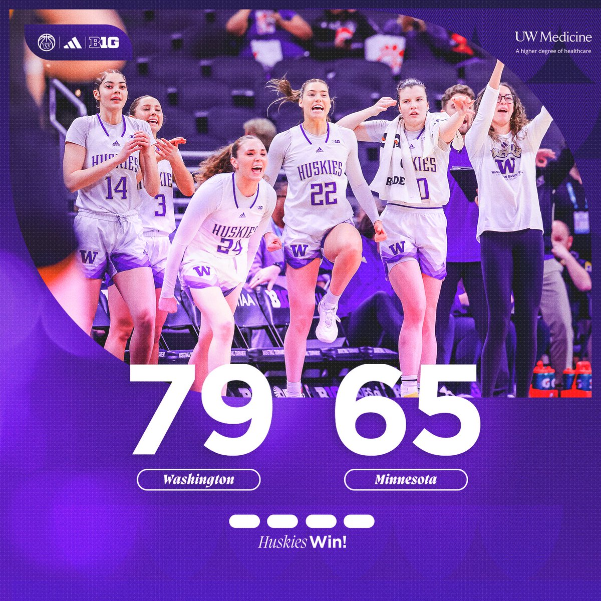 The Washington Huskies (19-12, 9-9 B1G) beat the Minnesota Golden Gophers (20 -11, 8-10 B1G), 79-65, to advance to the second round of the B1G 10 Tournament in Indianapolis.