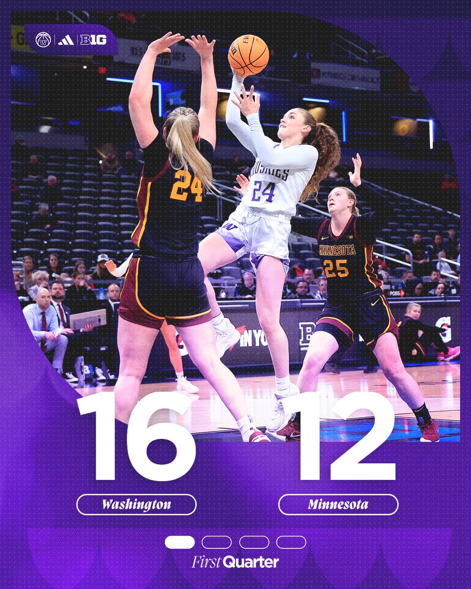 The Huskies outscored the Gophers, 16 to 12, in the first period.