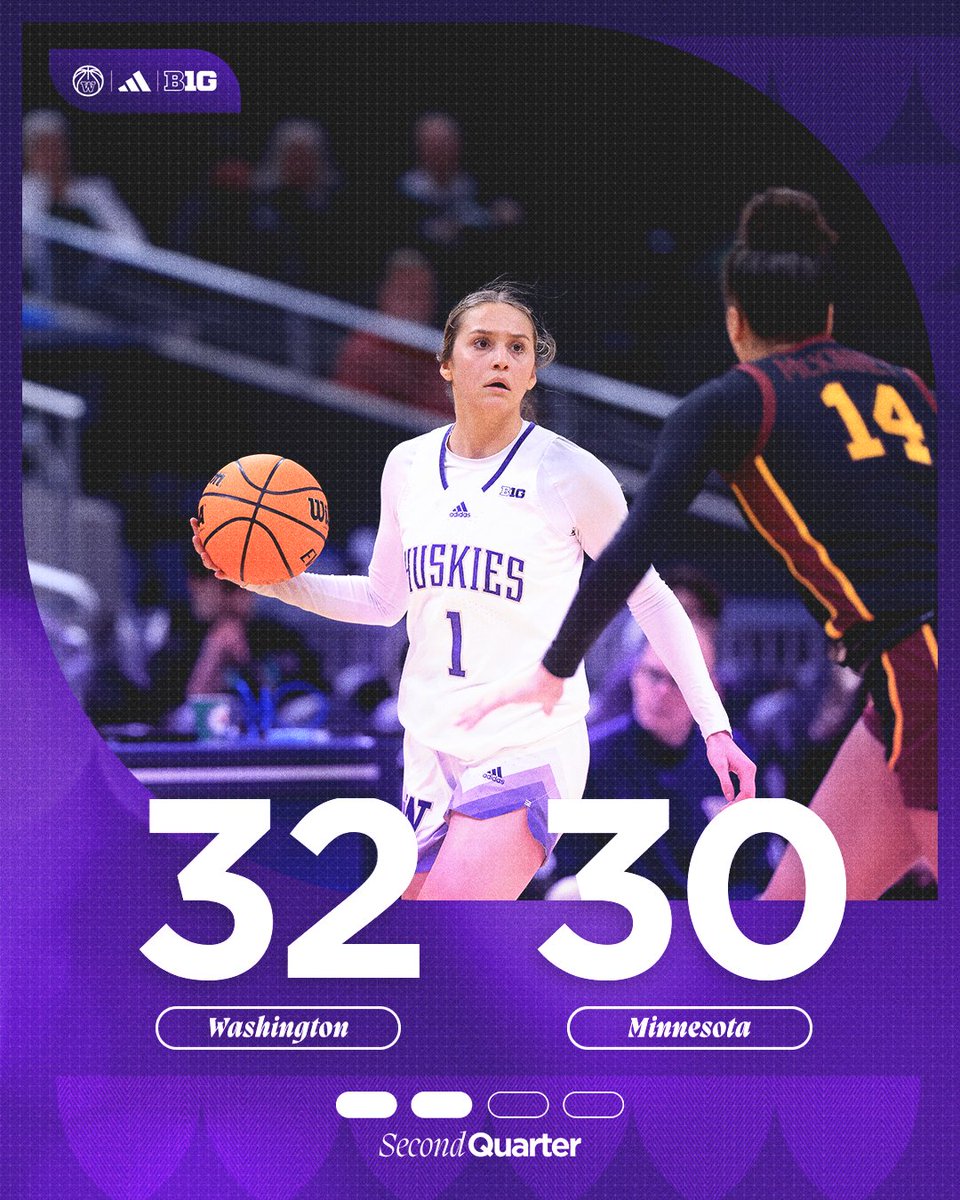 Heading into halftime, the Huskies led the Gophers, 32-30.