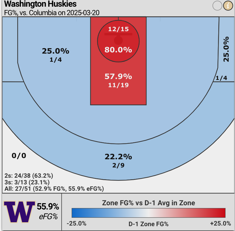 The Washington Huskies exploded in the first two quarters to seize control of the contest versus the Columbia Lions, but seemed to implode in the second half resulting in a 60-63 Huskies loss.