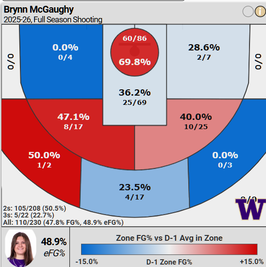 Meanwhile, Brynn McGaughy anchors the frontcourt offense with her 8.9 points on an efficient 69.8% scoring around the rim.